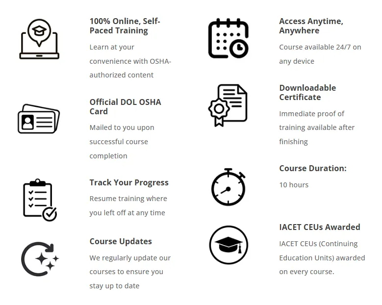Yes. Our OSHA Outreach courses are fully online and self-paced, allowing you to complete them at your convenience from any device with internet access.