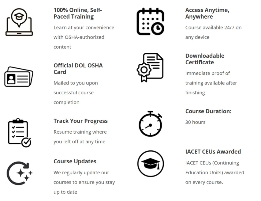 Yes. Our OSHA Outreach courses are fully online and self-paced, allowing you to complete them at your convenience from any device with internet access.